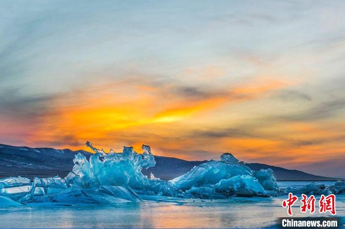圖為青海湖冰凍期的晚霞。趙海梅 攝