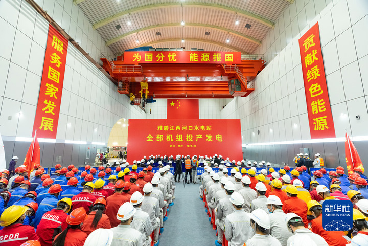 3月18日拍攝的雅礱江兩河口水電站全部機組投產發(fā)電儀式。新華社記者 沈伯韓 攝