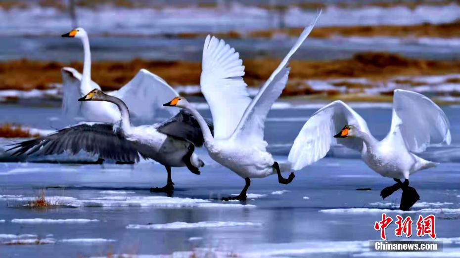 春風(fēng)時(shí)節(jié),上百只天鵝在柴達(dá)木盆地可魯克湖翩翩起舞。在碧波蕩漾的湖水中,大天鵝、灰鶴等野生鳥類時(shí)而翩翩起舞,時(shí)而振翅高飛,時(shí)而低空盤旋,為春日的可魯克湖增添了一份美麗與靈動(dòng),呈現(xiàn)出一幅五彩繽紛的生態(tài)之美畫卷。