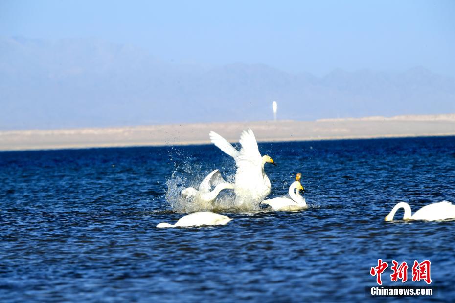 上百只天鵝在柴達(dá)木盆地可魯克湖翩翩起舞