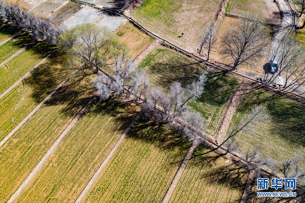 一塊塊麥田錯落有致裝扮著大地。新華網(wǎng) 宋忠勇 攝