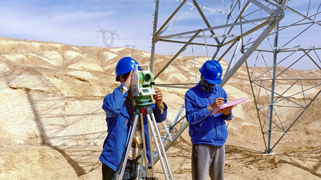 輸電運(yùn)維人員開(kāi)展新建桿塔傾斜測(cè)量工作。才項(xiàng)東只 攝