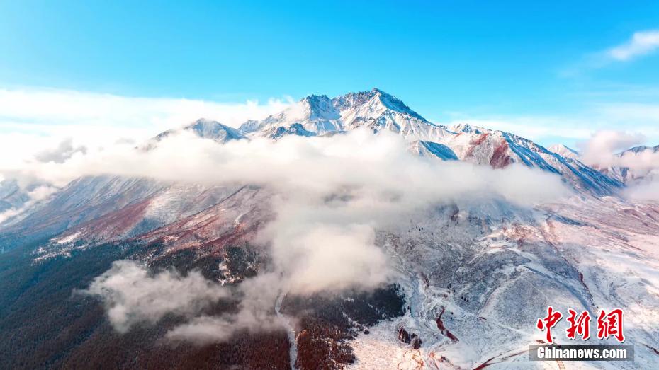 一場春雪過后,青海省海北藏族自治州祁連山國家公園青海片區(qū)群山被白雪覆蓋,云霧繚繞,金色的草場、潔白的羊群和蔚藍(lán)的天空相映成趣,美不勝收。[詳細(xì)] -