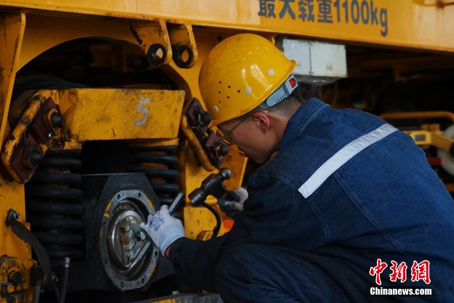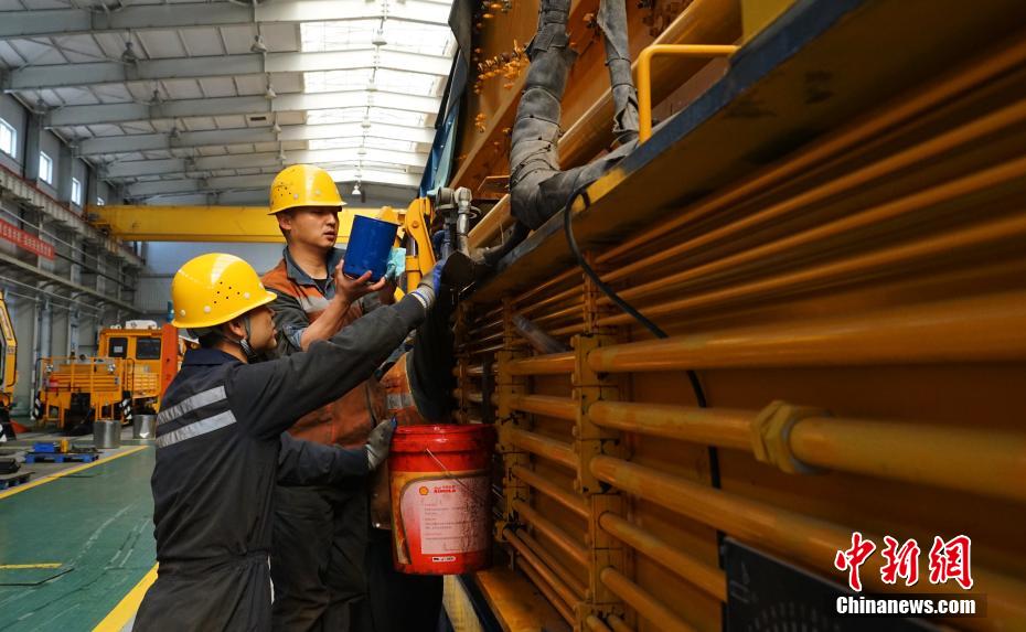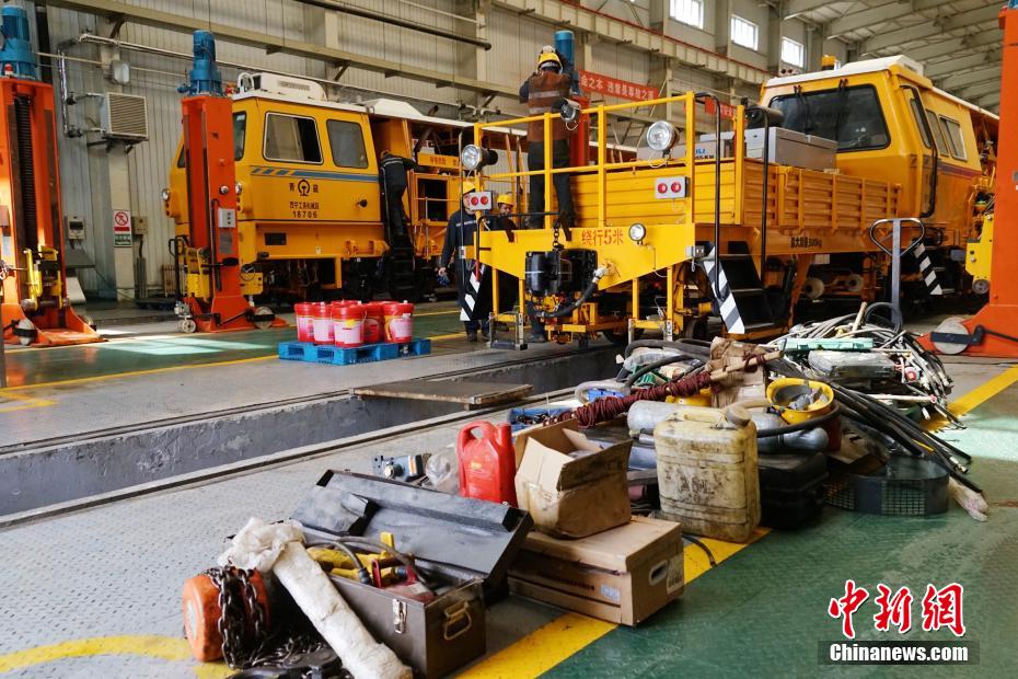 4月8日,在青藏集團公司西寧工務機械段檢修車間內,職工正為檢修大型養(yǎng)路機忙碌著。因高原海拔高、冬季鐵路線路質量不易控制,西寧工務機械段施工季均在每年4月份至11月份,作業(yè)范圍覆蓋整個青藏鐵路。此前,所有大型養(yǎng)路機械都需進行設備年度集中修,經(jīng)維修作業(yè)裝置、檢查電路及液壓系統(tǒng)、探傷車軸損傷、校驗制動閥件等并檢驗合格后才能上線作業(yè)。檢修車間每年的年度集中修都在檢修庫內進行,俗稱“大機4S店”。