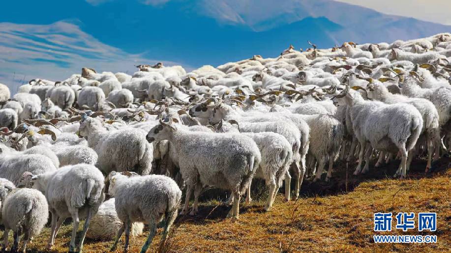 共和縣倒淌河鎮(zhèn)次汗達哇村的藏羊養(yǎng)殖基地的藏羊(資料圖)。新華社記者 柳澤興 攝