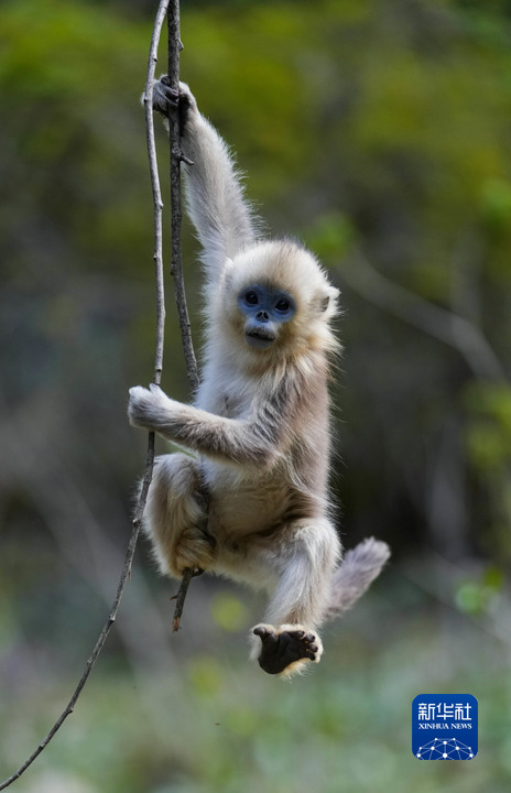 這是4月26日在四川白河國家級自然保護區(qū)里拍攝的川金絲猴。新華社記者 江宏景 攝