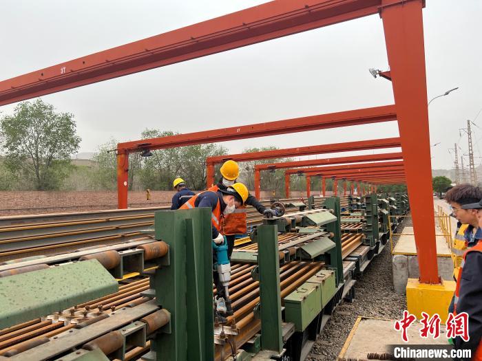 記者17日從中國鐵路青藏集團有限公司(以下簡稱“青藏集團公司”)獲悉,日前,青藏集團公司西寧工務(wù)機械段換軌車間610米重型長軌車隊,從中國鐵路蘭州局集團公司管內(nèi)河口南站裝載的24根500米長軌,在烏魯木齊局管內(nèi)烏拉泊站卸載,完成了“千里運送鋼軌”的首站任務(wù)。
