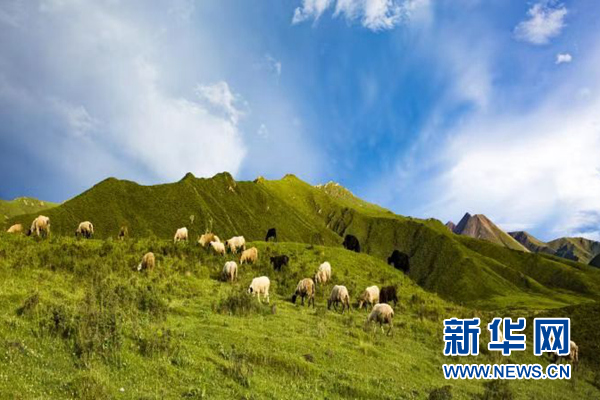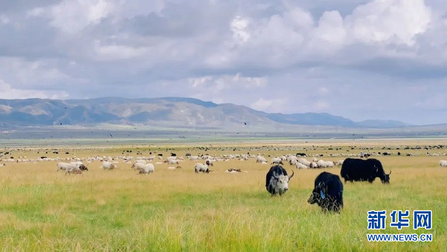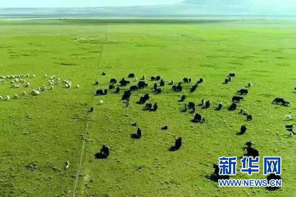 海南州興??h一處牧場上牛羊在覓食。新華網(wǎng)發(fā)