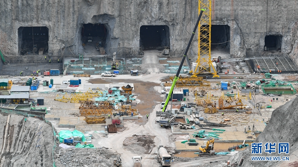 工人在地下廠房施工現(xiàn)場作業(yè)。