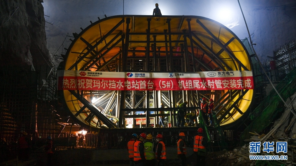 瑪爾擋水電站地下廠房目前全部開挖完成,首臺(tái)機(jī)組尾水肘管安裝完成,施工已經(jīng)全面從開挖轉(zhuǎn)序到混凝土澆筑階段,其余部位正有序推進(jìn)。