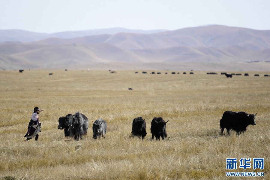 秋日時(shí)節(jié),在黃南州澤庫縣寧秀鄉(xiāng),當(dāng)?shù)啬撩裨诓菰戏拍痢P氯A社記者 張龍 攝