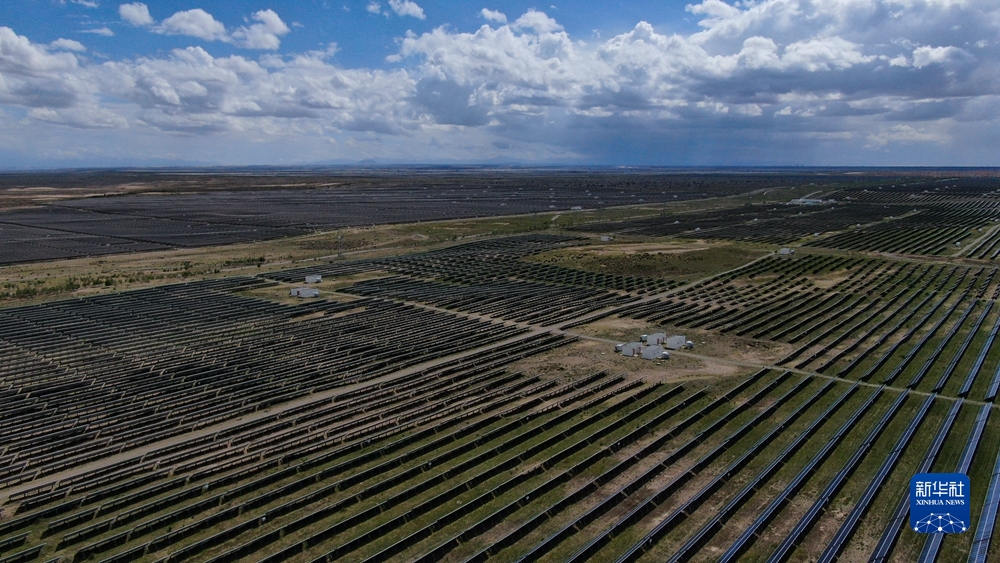 這是6月26日在青海省海南藏族自治州共和縣拍攝的光伏電站(無人機照片)。新華社記者 張龍 攝