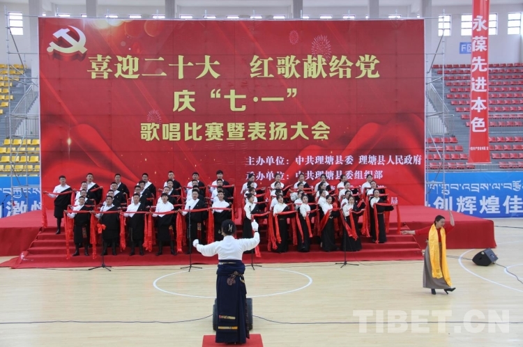 中國(guó)西藏網(wǎng)訊 7月1日,四川省甘孜藏族自治州理塘縣舉行“喜迎二十大 紅歌獻(xiàn)給黨 慶‘七?一’歌唱比賽暨表?yè)P(yáng)大會(huì)”,高原藏家兒女用歌聲和舞蹈表達(dá)感黨恩、愛(ài)祖國(guó)、跟黨走的決心和信心。(中國(guó)西藏網(wǎng) 通訊員/葉強(qiáng)平)
