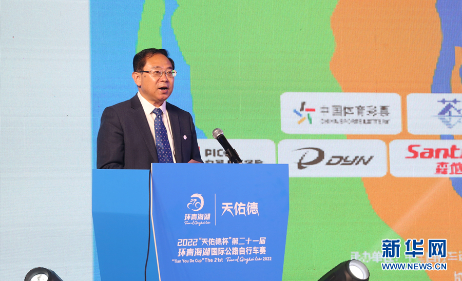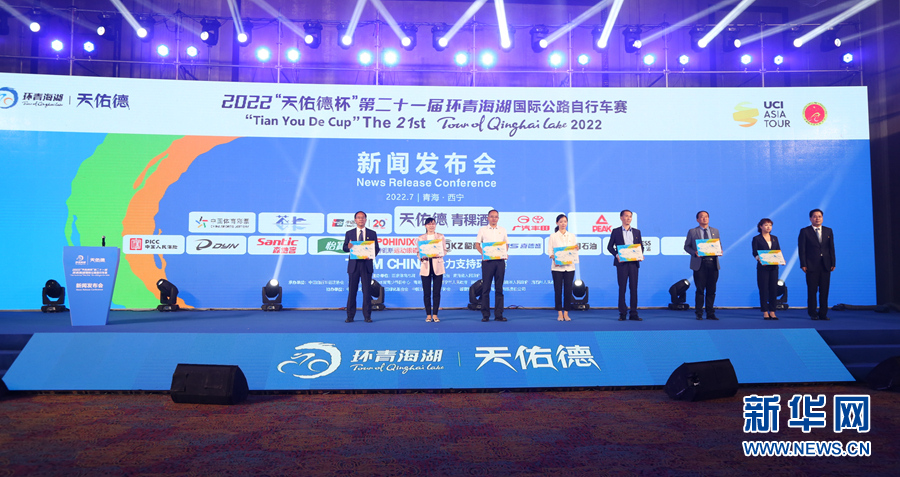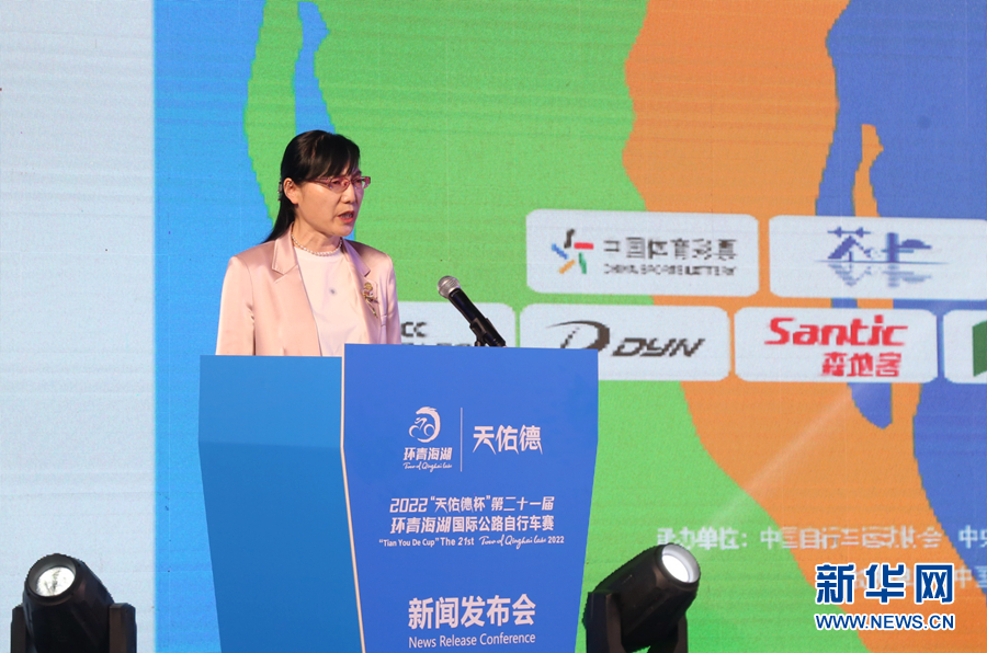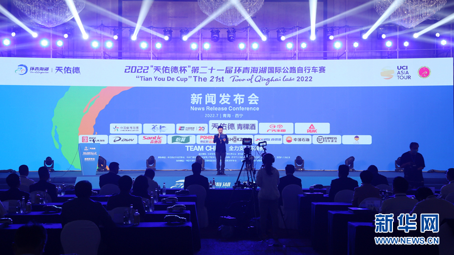 2022第二十一屆環(huán)青海湖國際公路自行車賽新聞發(fā)布會現場。新華網 卡婭梅朵 攝
