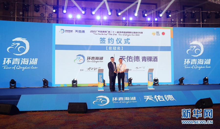 環(huán)湖賽組委會辦公室常務副主任、青海省體育局副局長楊海寧代表組委會與贊助商簽約。新華網 卡婭梅朵 攝