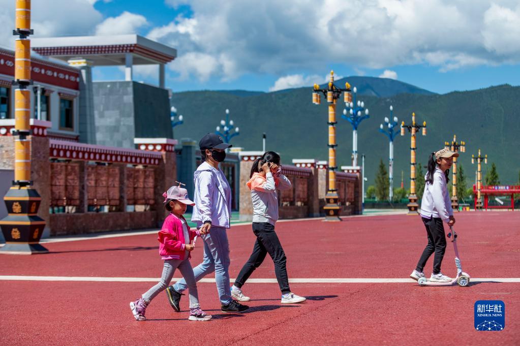 7月29日,人們?cè)邴愊汨F路香格里拉站站前廣場(chǎng)游玩。新華社記者 陳欣波 攝