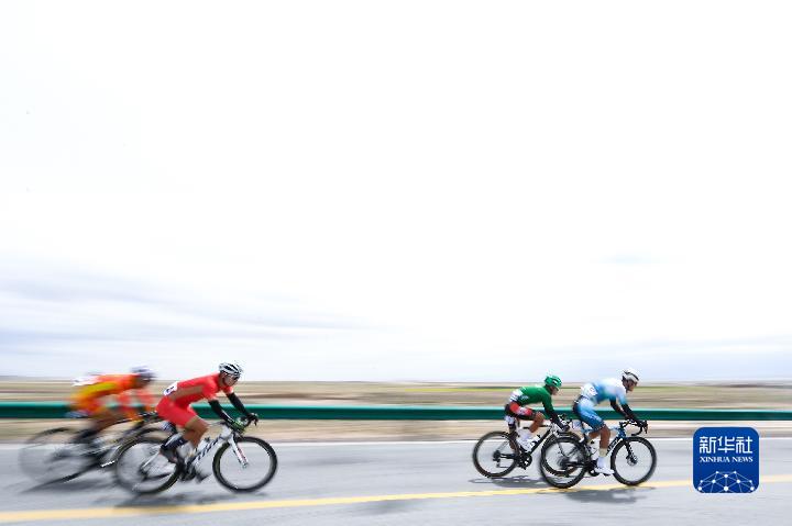 7月31日,第21屆環(huán)青海湖國(guó)際公路自行車(chē)賽進(jìn)行第五賽段青海湖景區(qū)至茶卡壹號(hào)·鹽湖景區(qū)的角逐。新華社記者 張龍 攝