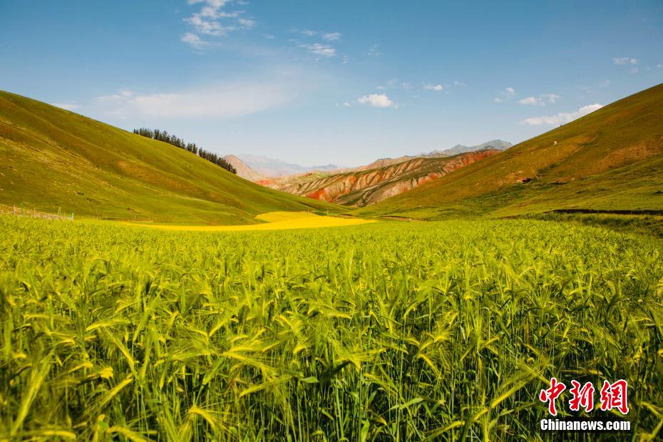 盛夏時(shí)節(jié),走進(jìn)青海海北藏族自治州祁連縣,親臨卓爾山讓人感覺到這里環(huán)境幽靜,空氣清新,風(fēng)景秀麗,數(shù)十條褶皺山脈縱橫捭闔,紅色的砂巖礫石放射出丹霞地貌特有的光采。平緩的坡地上,油菜花、青稞,牧草、鮮花、原始森林相互間雜,田野、村莊與大自然融為一體,在大地上描繪出一幅氣勢恢弘色彩斑斕的畫卷。 趙海梅 攝