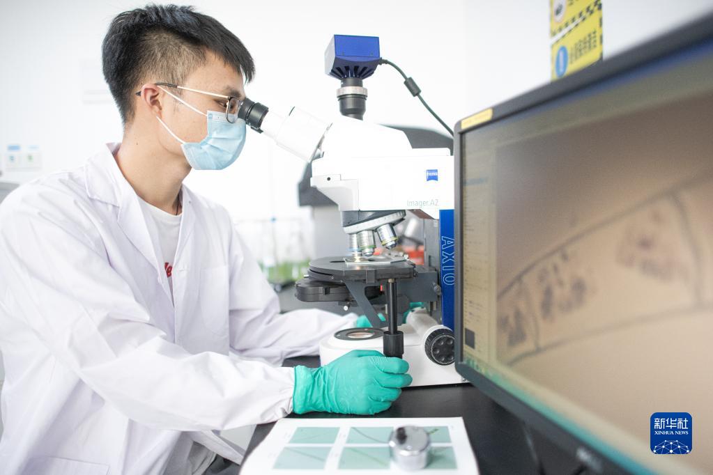 8月3日,在長江科學(xué)院實(shí)驗(yàn)室,科研人員對長江源區(qū)采集的藻類樣本進(jìn)行鑒定。 新華社記者 肖藝九 攝