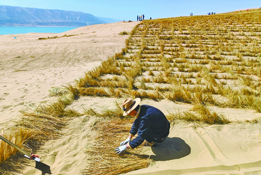 整齊排列的草方格,隨風搖曳的烏柳樹,生機勃勃。青海省海南藏族自治州共和縣龍羊峽庫區(qū)北岸——曾經的不毛之地,如今已煥然一新,一條條綠色長廊盡顯生命的力量。自生態(tài)項目建設以來,共和縣通過草方格沙障與烏柳插桿水鉆造林、檸條直播及沙蒿撒播相結合等方法進行荒漠化治理,造林成活率達到90%以上,創(chuàng)造出龍羊峽北岸的“綠色奇跡”。
