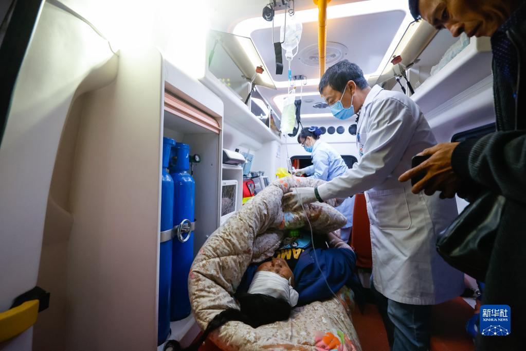 9月5日晚,在四川甘孜州瀘定縣磨西鎮(zhèn)的受災(zāi)群眾臨時(shí)安置點(diǎn),醫(yī)務(wù)人員在轉(zhuǎn)運(yùn)傷員。新華社 沈伯韓 攝