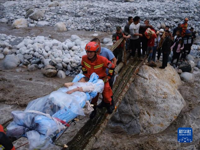 截至當(dāng)晚8時(shí)50分,在甘孜州瀘定縣磨西鎮(zhèn),支隊(duì)消防員共轉(zhuǎn)移村民100人,轉(zhuǎn)移重傷員17人。