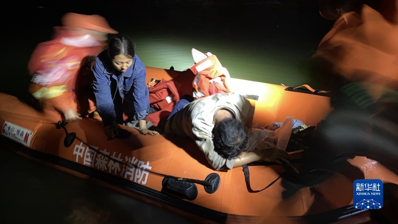 9月5日,在瀘定縣德妥鎮(zhèn)新華村,甘孜州森林消防支隊(duì)救援人員通過(guò)橡皮艇轉(zhuǎn)移受傷群眾。魏紅攝