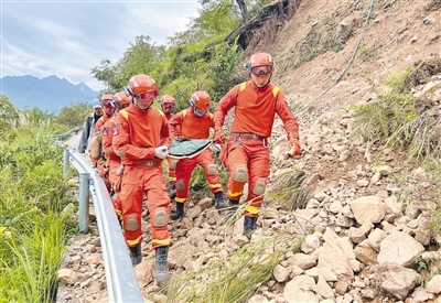 公安出動警力3600余人次,交通系統(tǒng)累計開通高速公路“綠色通道”1271條,派出搶險救援隊伍32支、1574人次,搶通48處阻斷點。中國安能三局出動102人、31臺裝備于昨日打通進入磨西鎮(zhèn)道路。