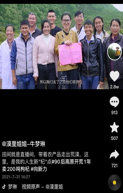 牛夢琳說:“我想通過做短視頻增加自己枸杞的銷量,同時也向大家介紹枸杞的功效,沒有中間商帶來的問題,我們從產(chǎn)地直接給顧客發(fā)貨,質(zhì)量好,價格也低?!?/p>