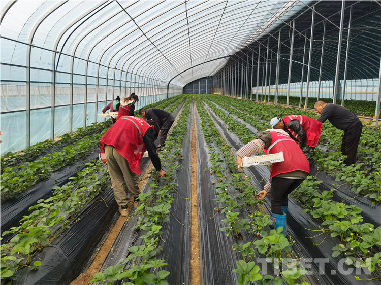 中國西藏網(wǎng)訊 時下,在四川省甘孜藏族自治州理塘縣濯桑現(xiàn)代農(nóng)業(yè)產(chǎn)業(yè)園區(qū),120畝草莓經(jīng)過100天的生長后迎來了收獲季。走進園區(qū)康呷村種植基地,大棚里的草莓長勢喜人,當?shù)?0多名農(nóng)牧民群眾正忙著梳葉、采摘,大棚里四處洋溢著豐收的喜悅?!耙郧拔覀兂朔N青稞、土豆之外,其余大多數(shù)時間都到處去打臨時工,收入也很不穩(wěn)定,一年到頭只能掙幾千元錢?!爆F(xiàn)年25歲的濯桑鄉(xiāng)漢戈村民格絨志瑪說道。