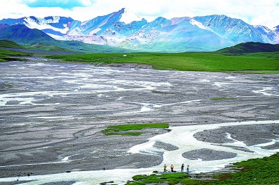 在科考行程中,我們來(lái)到長(zhǎng)江源一處辮狀河道,我瞬間被現(xiàn)場(chǎng)的景象震撼了:遠(yuǎn)處是巍峨的雪山,多股分叉水道在眼前的大小沙洲間分分合合、相互交織,科考人員在岸邊專(zhuān)注地取樣監(jiān)測(cè)……看到這樣壯美的景觀(guān),我激動(dòng)不已,一口氣爬到對(duì)面山坡的一塊巨石上,卻忘了這是海拔4800米的高原。結(jié)果,我大口喘氣、心臟狂跳不止,一邊取出機(jī)器一邊提醒自己:一定要平緩呼吸,穩(wěn)穩(wěn)按下快門(mén)。