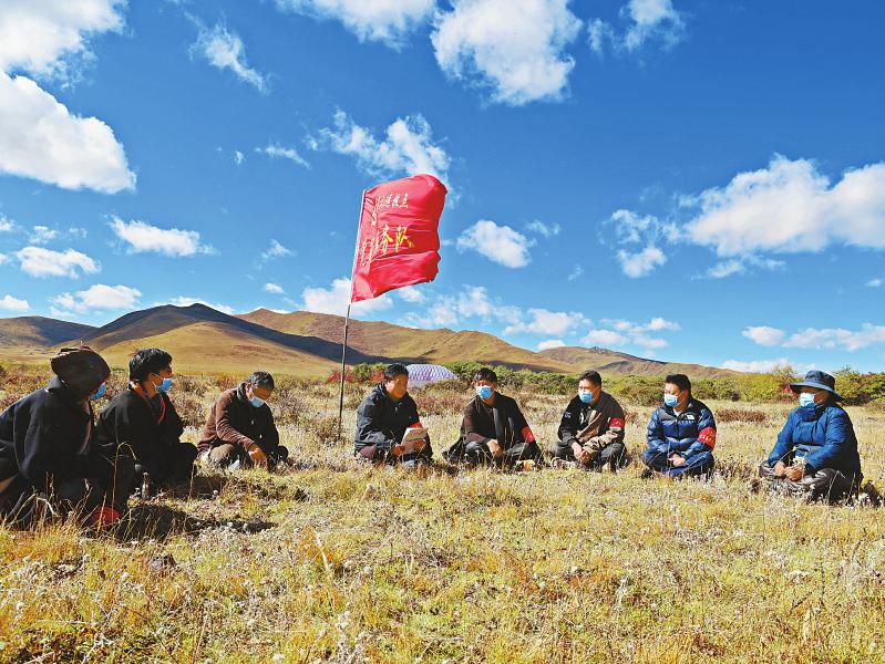 這一天,草原深處的賈曲河畔,草色枯黃,遠(yuǎn)處山頂覆蓋著白雪,耳旁除了風(fēng)聲還有牦牛的叫聲?,F(xiàn)場(chǎng),大家談興正濃,討論還在持續(xù)。