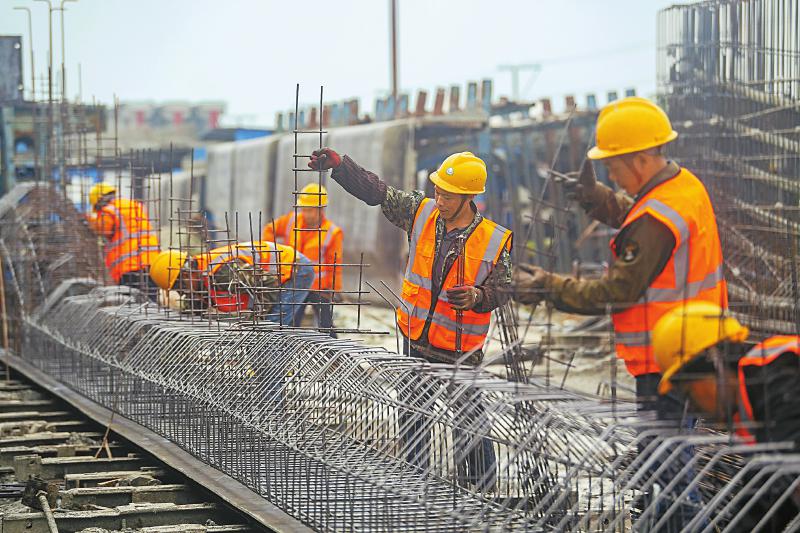 工人正在綁扎施工。成蘭鐵路公司供圖