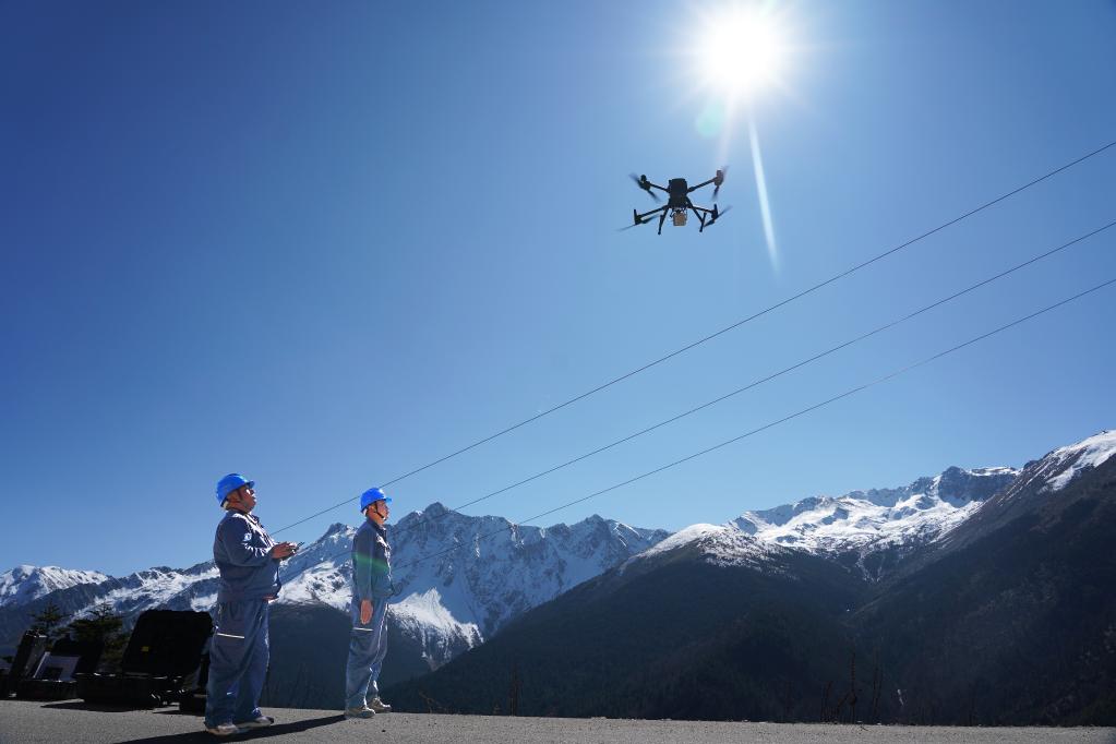 2022年11月17日,無人機在梅里雪山巡檢。(受訪者供圖)