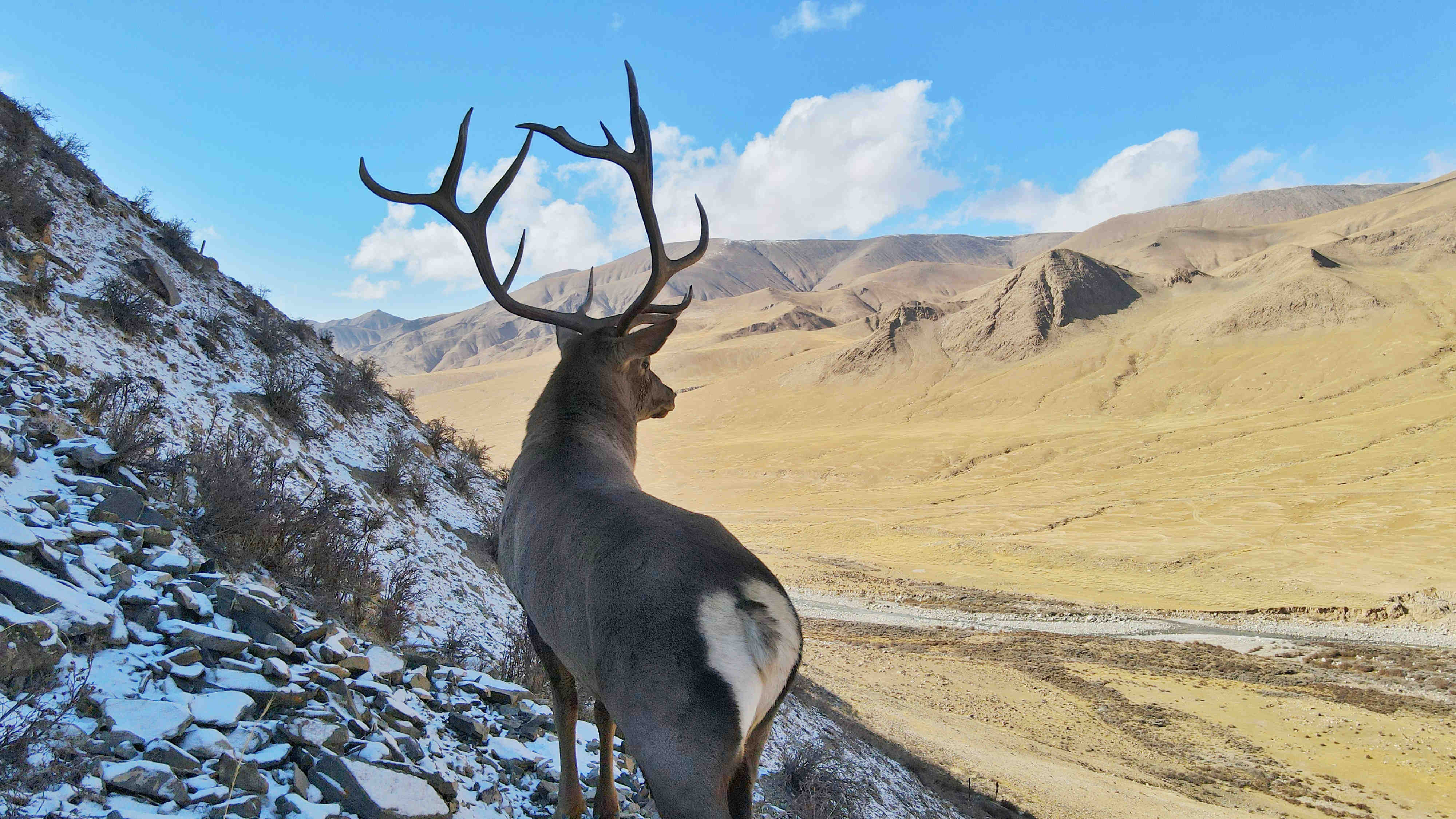 青海海西:上百只白唇鹿現(xiàn)身柏樹(shù)山