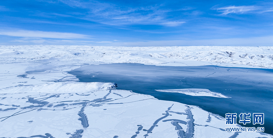 封凍的湖面如同破碎的“玉帶”,形成獨特的景觀。新華網(wǎng)發(fā)(宋忠勇 攝)