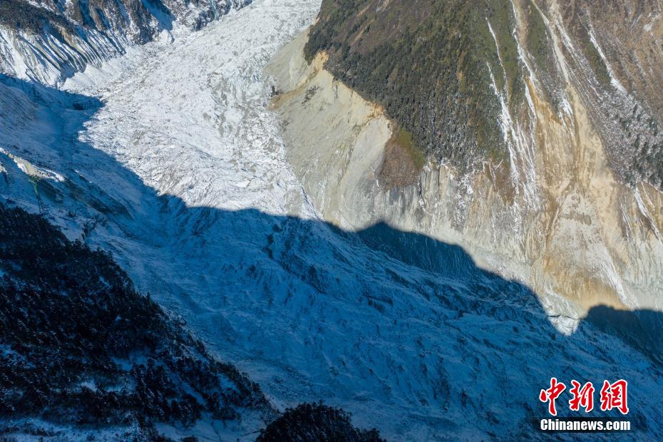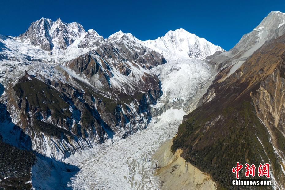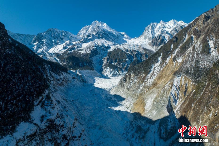 1月9日,中新網(wǎng)記者走進(jìn)四川瀘定海螺溝景區(qū)核心區(qū),航拍經(jīng)歷了2022年“9.5”瀘定6.8級(jí)地震的貢嘎山海螺溝冰川冰瀑布,雄偉壯觀依舊。