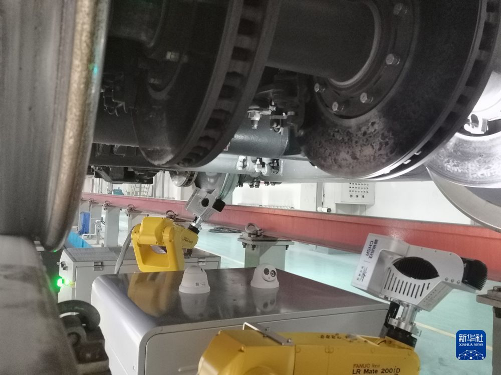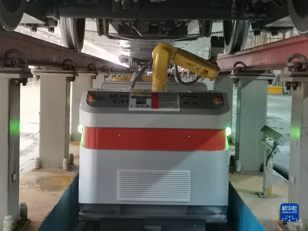 動車組智能檢修機(jī)器人在車底工作。新華社記者 解統(tǒng)強(qiáng) 攝