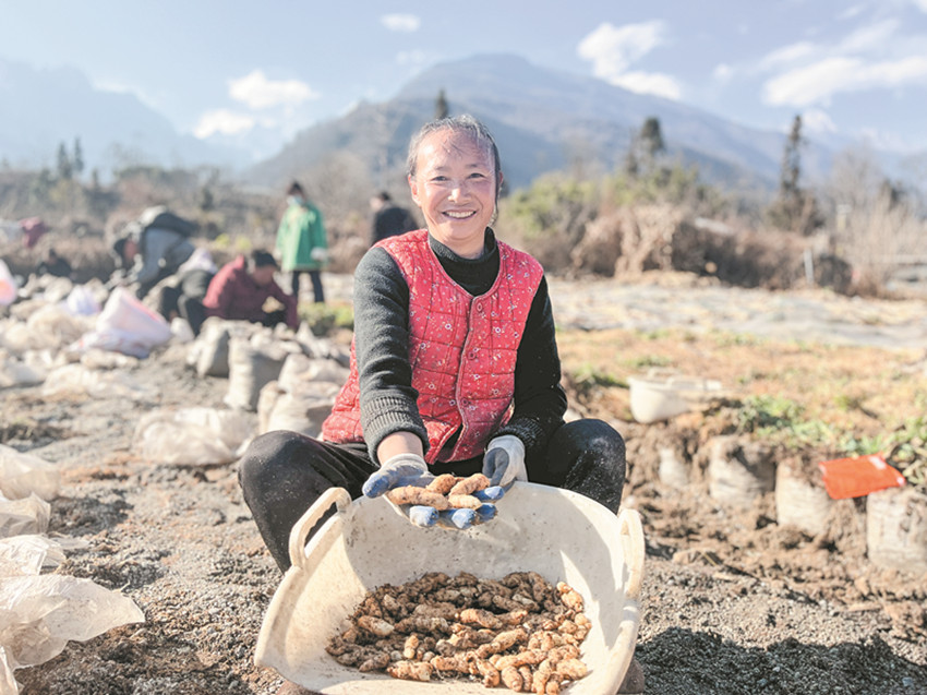 距離大坪村不遠的磨西鎮(zhèn)和平村,被稱為致富帶頭人的村民王福剛一面為冬去春來約種天麻而籌措,一面為吸收當?shù)卮迕褚怨ごc而欣慰。