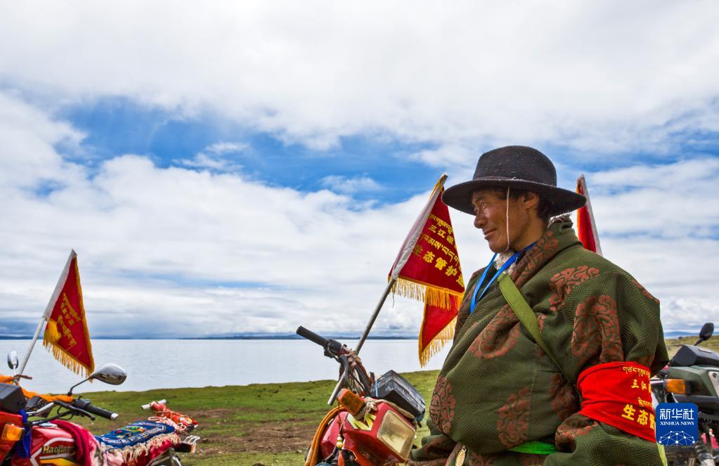 作為三江源國家公園的一名生態(tài)管護(hù)員,尼瑪扎西每天在放牧自家牛羊的同時(shí),也承擔(dān)撿拾垃圾、巡護(hù)湖泊草場、巡查和保護(hù)野生動(dòng)物等職責(zé)。