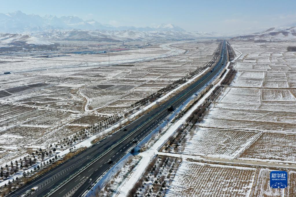 2月14日拍攝的烏鞘嶺及周邊雪景(無(wú)人機(jī)照片)。新華社記者 范培珅 攝