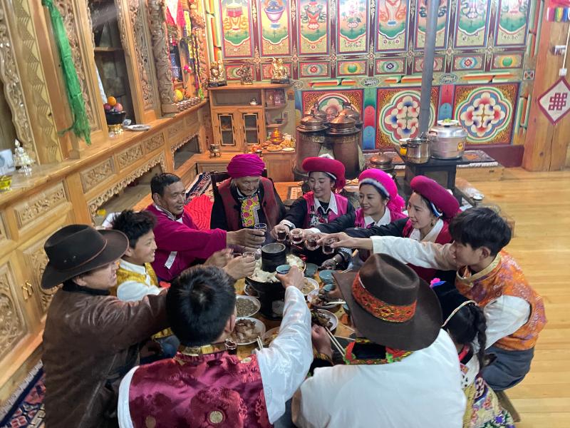 在濃厚的新年氛圍里,初稱心頭的幸福感滿滿:“這幾年,在黨的好政策指引下,我們的日子真的越來越好了,去年家里經(jīng)營(yíng)的房車營(yíng)地賺了4萬多元,女兒在外打工,兩個(gè)孫子都在讀大學(xué),老母親身體健康,生活不用發(fā)愁……話語間,生活過得越來越滋潤(rùn)的一家人舉起酒杯,“干杯,羅薩扎西德勒!(意為新年吉祥如意)”酒杯碰在一起,發(fā)出清脆的響聲,大家喜慶洋洋的在一起慶新年,說祝福,祈愿來年日子越來越紅火……