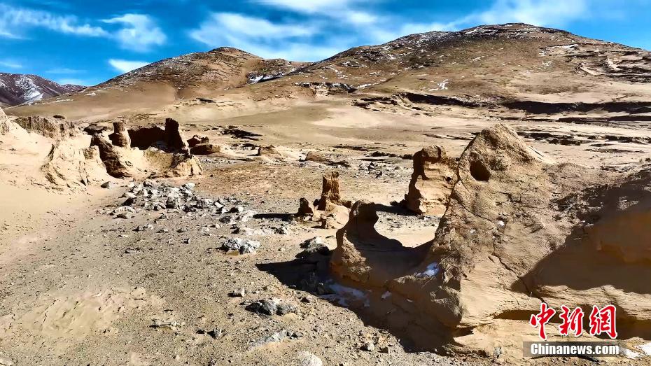 圖為風(fēng)蝕而成的土墩。馬海青 攝
