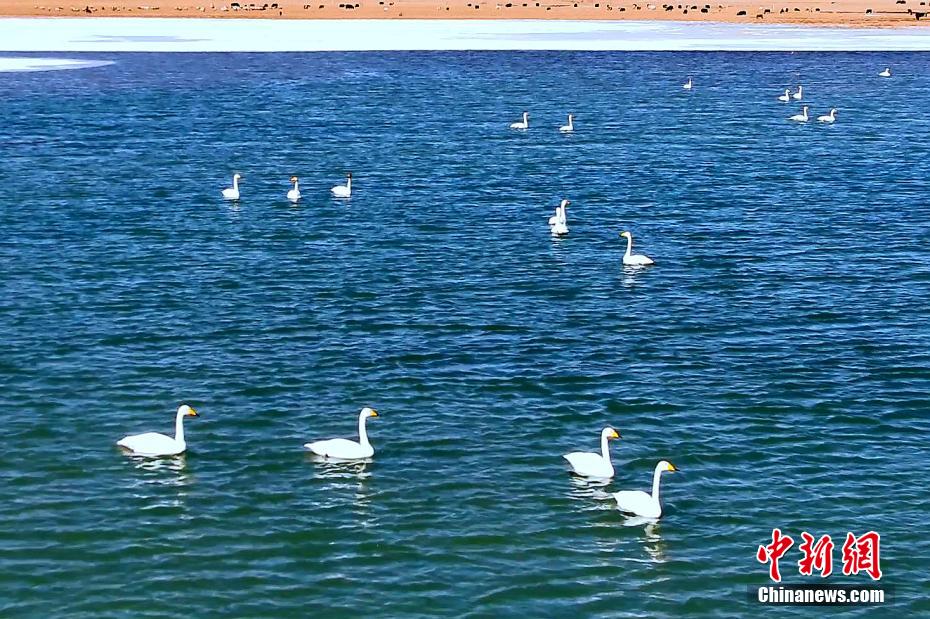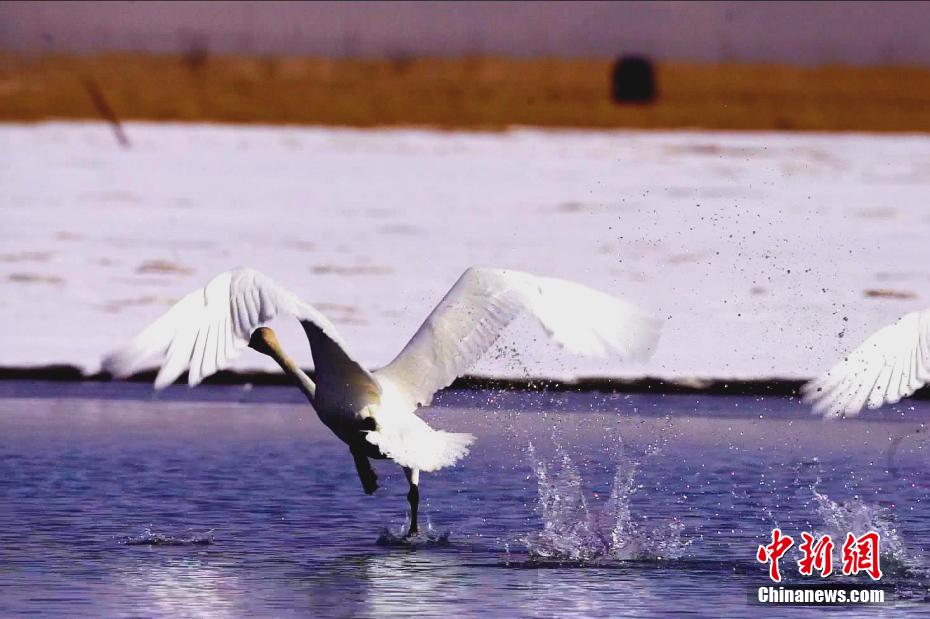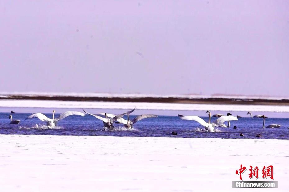 高原初春,在素有“高原藍(lán)寶石”之稱的青海湖,記者拍攝到成群大天鵝在湖面上練習(xí)起飛、降落、滑行。青海國(guó)家公園觀鳥協(xié)會(huì)會(huì)長(zhǎng)王艦艇介紹,每年3月中旬,在青海越冬的大天鵝都會(huì)踏上北遷繁殖路。目前在青海湖的大天鵝多為青海東部黃河流域的“冬候鳥”,在青海湖短暫停留后北遷到夏季繁殖地,在秋末初冬時(shí)又會(huì)“舉家”回歸來(lái)到越冬地。大天鵝屬雁形目鴨科天鵝屬,為國(guó)家二級(jí)重點(diǎn)保護(hù)野生動(dòng)物,在國(guó)內(nèi)主要繁殖于新疆巴音布魯克,主要越冬地有天津及河北沿海、山東榮成和東營(yíng)、黃河中下游濕地、甘肅、青海、新疆等地。青海湖作為大天鵝的主要越冬地之一,開闊的湖面、涌流的泉水與充足的食物為大天鵝提供了適宜的棲息環(huán)境。