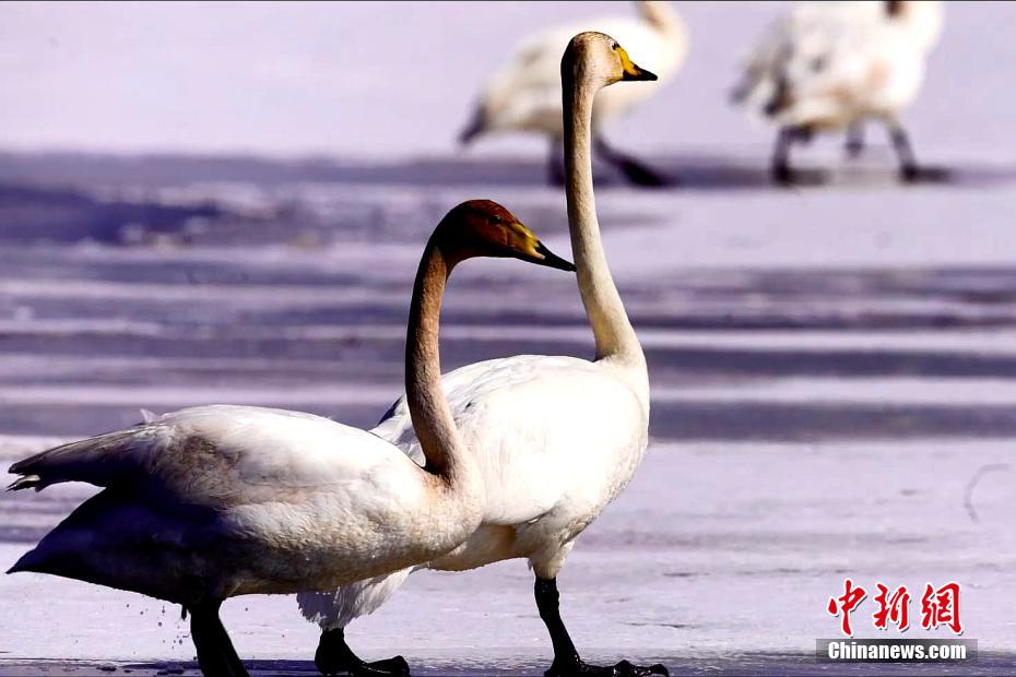 圖為天鵝結(jié)伴散步。俄日藏俄 攝