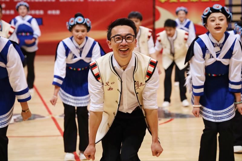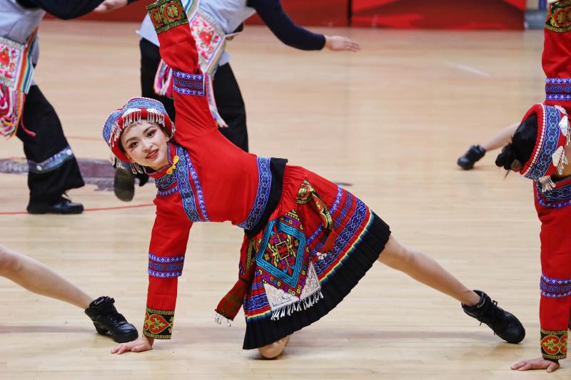 來自州級各委辦局、各企事業(yè)單位、各人民團體的16支代表隊參賽表演。 伴隨著輕松明快的音樂,《舞動高原》《鐵肩道義·踢踏前行》《桃香陶韻》《律動青春·點贊新時代》《斗嘎嘞》《花木“藍”焰》等節(jié)目逐一亮相,明艷的民族服飾,熱情的動作展演,贏得現(xiàn)場掌聲不斷。