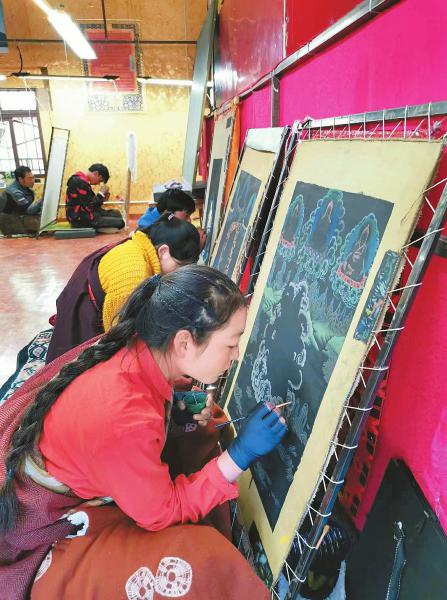 “現(xiàn)在,一個年輕的唐卡畫師,一幅大型作品就能賣出上百萬。”嘉陽樂住表示,雖然現(xiàn)在有了很多批量化生產(chǎn)的唐卡產(chǎn)品,但堅持傳統(tǒng)材料和工筆技藝虔心繪制的唐卡作品,依然受到市場的高度認可,“有些畫師的訂單已經(jīng)排到數(shù)年以后了?!蹦壳?,壤塘非遺項目產(chǎn)生的經(jīng)濟效益有2000萬元左右,對于偏遠牧區(qū)來說,這是一筆可觀的收入,同時帶動了3000余人就業(yè),創(chuàng)造了一個立足中華優(yōu)秀傳統(tǒng)文化脫貧致富的成功案例。