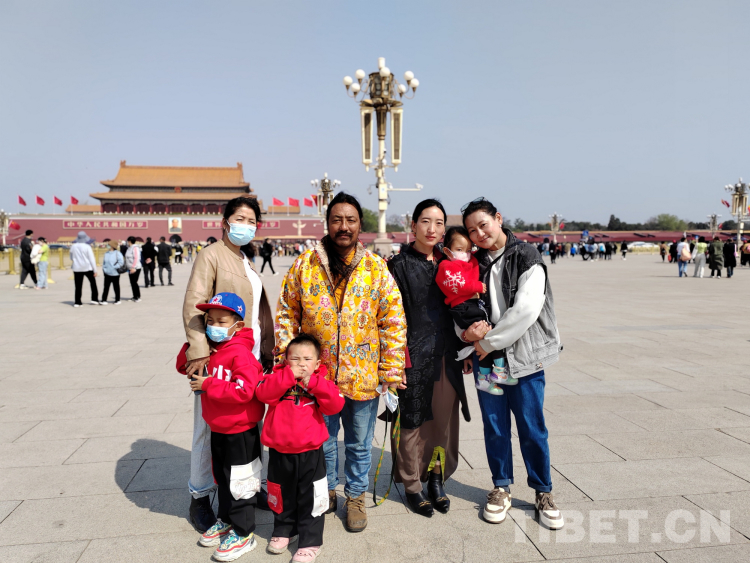 圖為3月31日,部分已出院的青海果洛唇腭裂患兒及患兒家屬來(lái)到天安門(mén)廣場(chǎng)游玩 北京同心共鑄公益基金會(huì)供圖