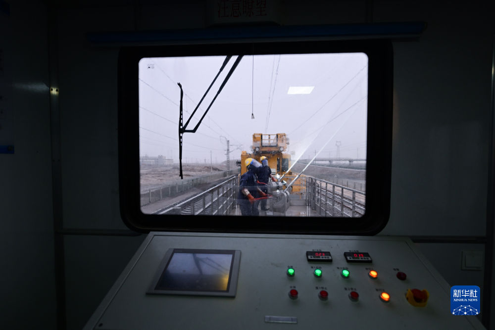 近日,為確保青藏鐵路牽引供電設備運行正常,保障青藏鐵路的暢通運行,中國鐵路青藏集團有限公司西寧供電段格爾木大修車間大修網(wǎng)工區(qū)組織人員利用沖洗車對青藏鐵路察爾汗段接觸網(wǎng)絕緣子設備附著的鹽污進行清洗作業(yè)。