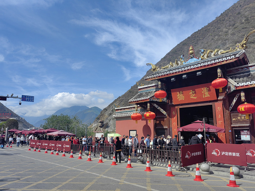 瀘定橋游人如織。